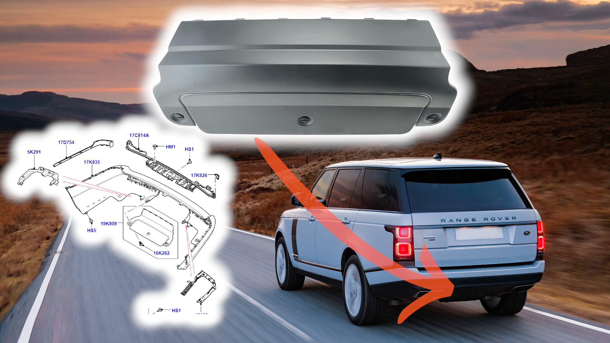 Заглушка заднего бампера Range Rover 2013-2022